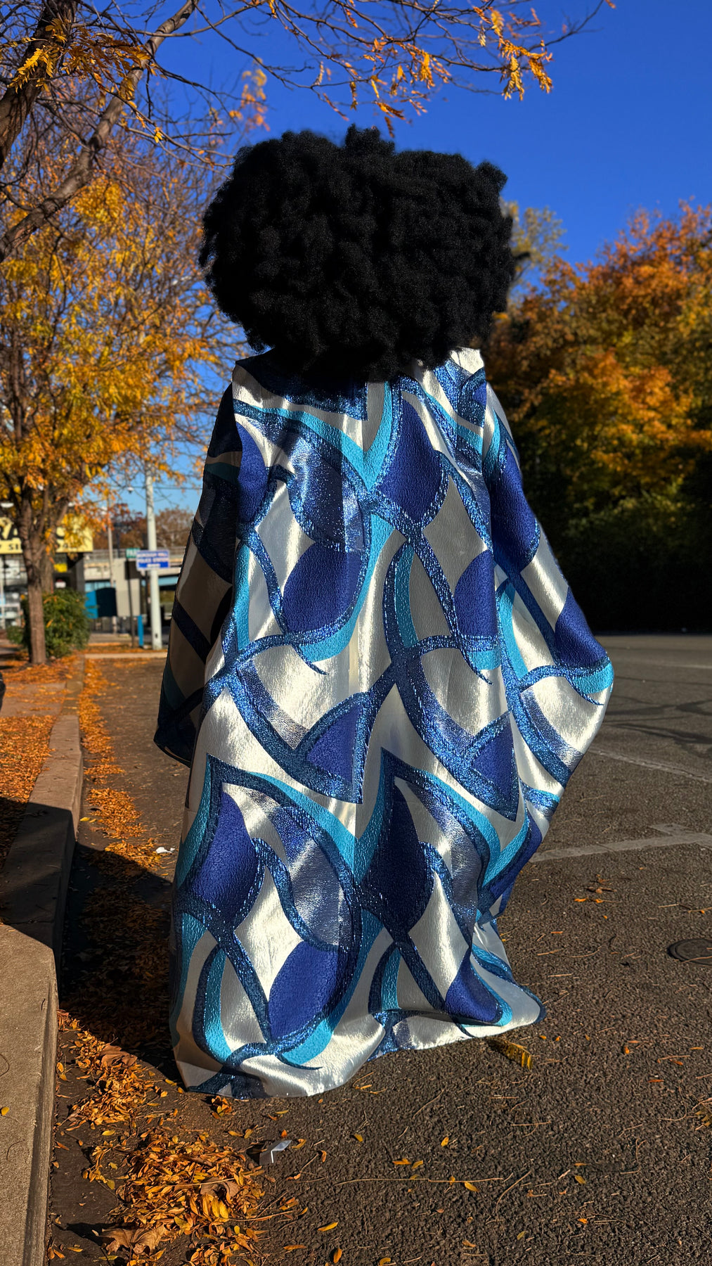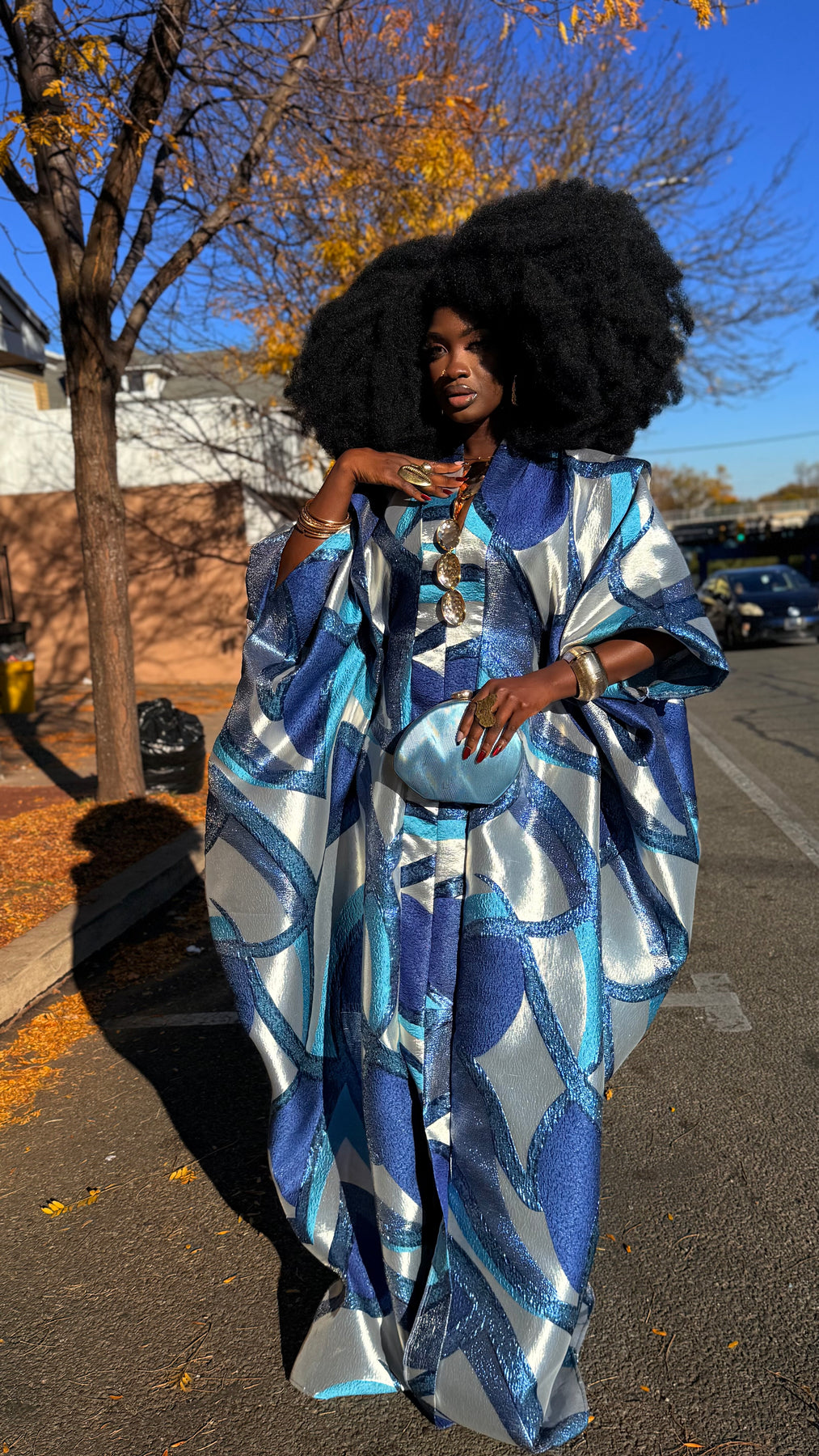 Command attention in our Royal Wave Metallic Bubu — a true fusion of luxury, culture, and power. Designed with rich metallic jacquard fabric, this piece shines in stunning shades of royal blue, sky blue, and silver, capturing light and admiration from every angle.